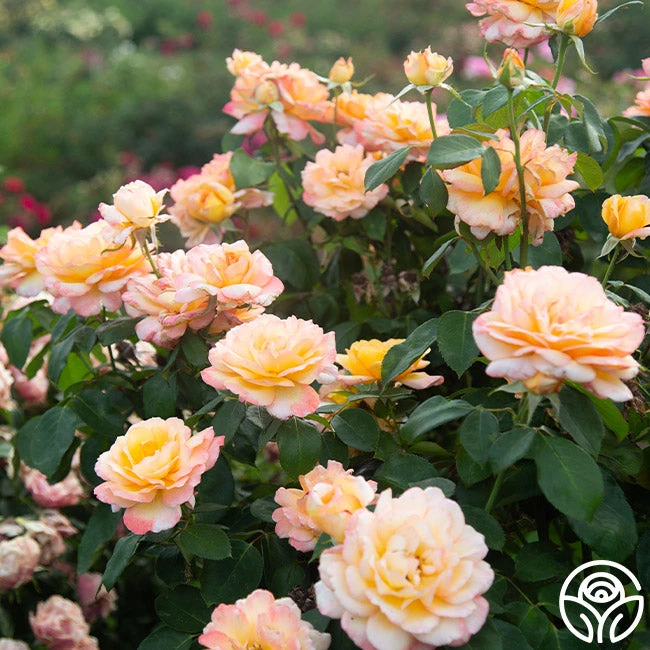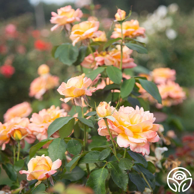 Glowing Peace is a gorgeous cupped and fully double rose with vibrant yellow-orange blended petals edged with red. She has a mild tea fragrance gently wafting from her 3.5” blooms. Glowing Peace performs well in beds, borders, or pots and is a stand-out in arrangements. We recommend adding all of the Peace roses to your garden for an ultimate display of calm and serenity!