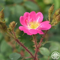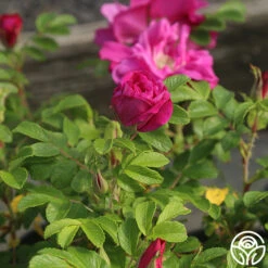 Honorine de Brabant, discovered in 1916, is one of the most popular of the old, striped roses blooming pale pink to lilac, striped with purple and crimson. Her flowers smell of a delightful raspberry and are produced in great numbers in both fall and spring with a scattering in summer months. Honorine de Brabant is a large, bushy plant with double cupped and quartered blooms set against light green foliage. She thrives in zones 6-10.