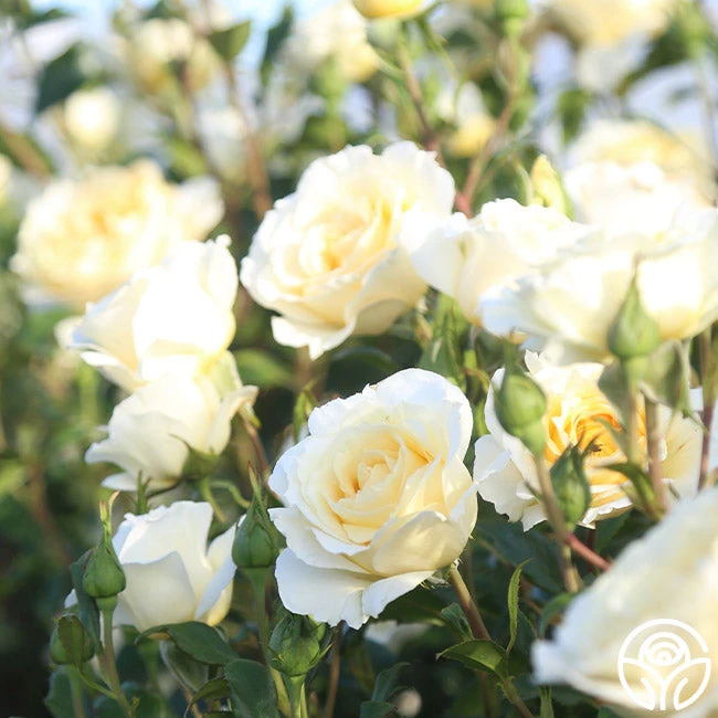 Irish Hope produces lovely, soft yellow, 4” blooms with 50+ petals in bold clusters with frilled petal edges. At times, her flowers appear in a blushed lemon. Irish Hope has a deliciously sweet honey-lemon perfume and is a tall continual blooming plant with dark-green healthy foliage. Choose this rose for her ability to grow effortlessly in even the most difficult of conditions