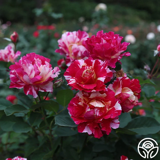 Named for the French painter, Maurice Utrillo is an easy to grow rose with petals painted in splattered red, white, and yellow stripes. This Hybrid Tea produces 3-4″, cupped blooms. He is disease resistant and makes a great gift for new rose gardeners as it is easy to care for, blooms in flushes throughout the season, and boasts a lovely moderate fragrance.