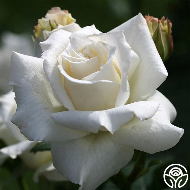 Pascali is a classic, exhibition-style Hybrid Tea with a very light fragrance and creamy, clear white flowers. His blooms are borne one to a stem on a vigorous, compact, repeat blooming bush with dark green foliage. Pascali does best in the warmer zones of 7-10.