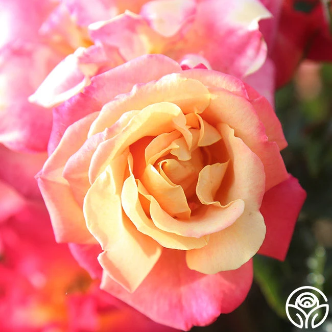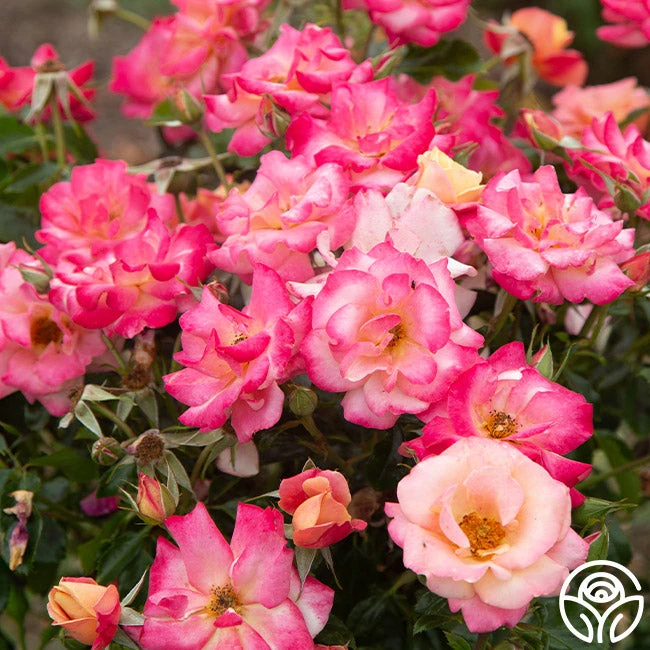 Polynesian Punch is a compact Floribunda Rose staying around 4’ tall by 3’ wide, making her a perfect choice for containers on patios, porches, and balconies. She is an over-achiever producing a non-stop, massive display of blossoms in a kaleidoscope of colors from orange to pink to yellow. With so much color, it’s like having several roses in one! Her blossoms average 2.5” with 15-17 petals. Polynesian Punch is best suited for the dry climate of the West Coast in zones 6-9.