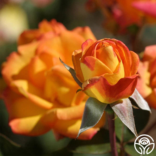 This beautiful rose will surprise you with her 4” blooms of delightful gold blend with red edging – each petal resembling a delicate flame. As expected, she doesn’t mind the heat either and thrives in zones 6-11! She will bloom in flushes throughout the season on a medium-sized, bushy plant. Red Gold’s long-lasting buds make an excellent cut rose of the most unique coloring.
